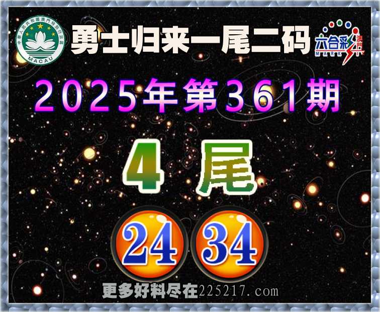 361期: 👚『勇士归来』 👚一尾二码👚【4尾主:24.34】开:24准