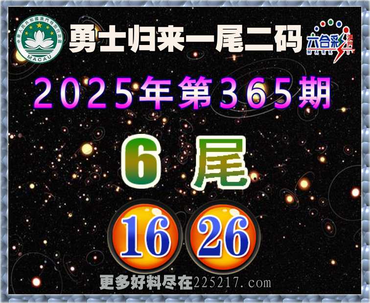365期: 👚『勇士归来』 👚一尾二码👚【6尾主:16.26】开:26准