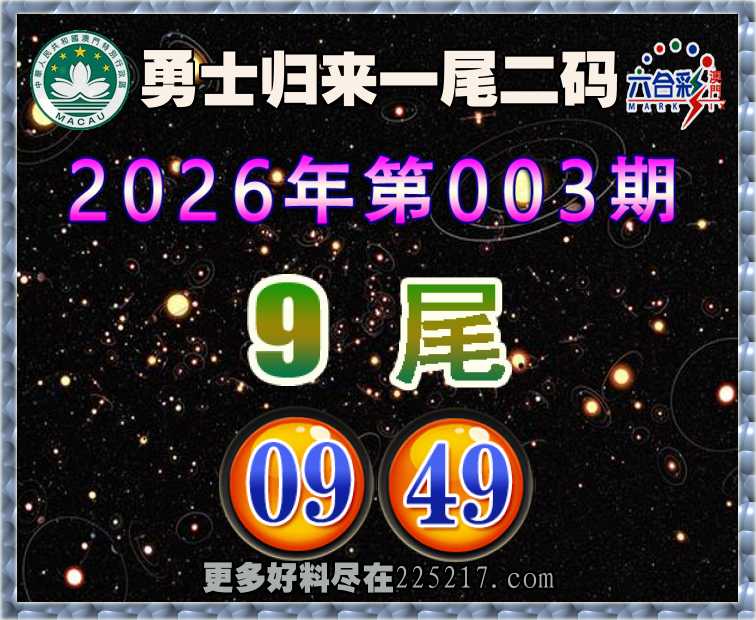 003期: 👚『勇士归来』 👚一尾二码👚【9尾主:09.49】开:09准