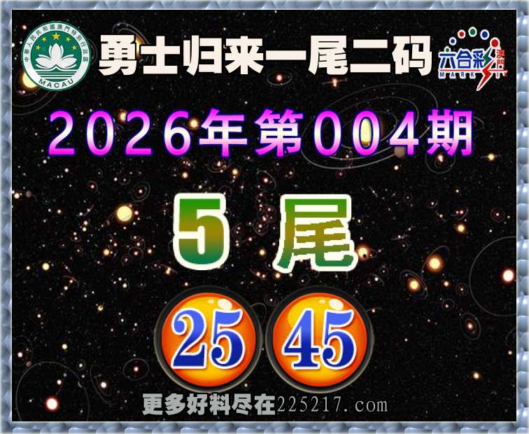 004期: 👚『勇士归来』 👚一尾二码👚【5尾主:25.45】开:45准