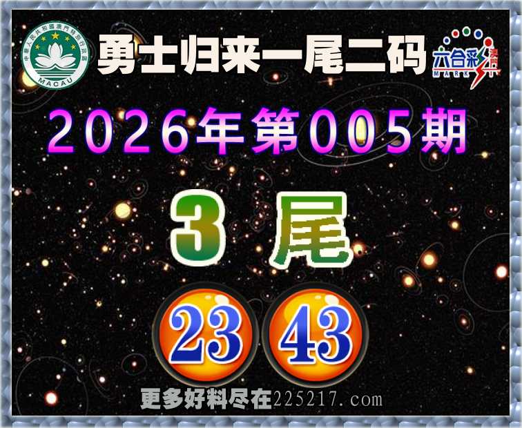 005期: 👚『勇士归来』 👚一尾二码👚【3尾主:23.43】开:43准