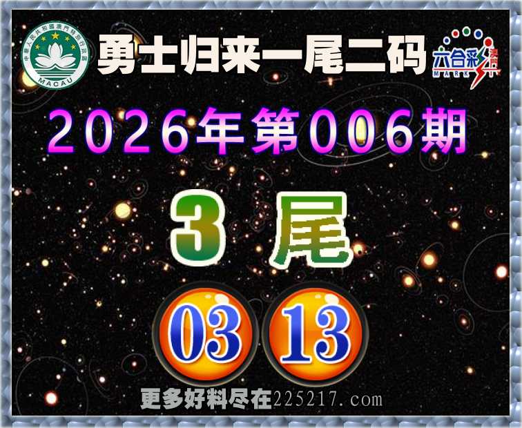 006期: 👚『勇士归来』 👚一尾二码👚【3尾主:03.13】开:13准
