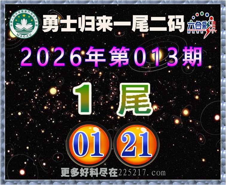 013期: 👚『勇士归来』 👚一尾二码👚【1尾主:01.21】开:01准