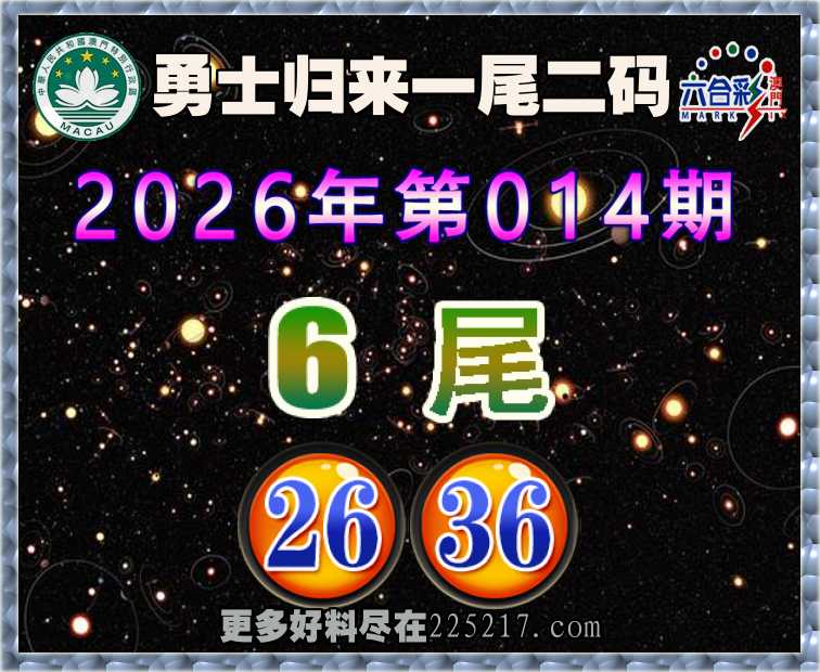 014期: 👚『勇士归来』 👚一尾二码👚【6尾主:26.36】开:26准